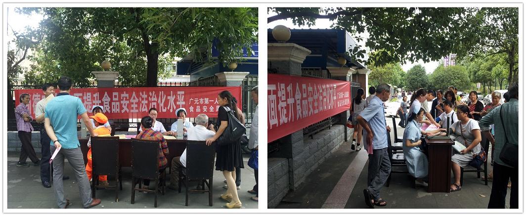 6月16日至7月2日是食品安全宣传周,我院按照市卫计委《关于开展2015年食品安全宣传周活动工作方案的通知》要求,围绕“尚德守法,全面提升食品安全法治化水平,建设美丽广元、幸福家园”宣传主题,开展了食品安全知识现场宣传咨询活动。医务人员通过宣传横幅、下发宣传资料、走进病房、职工食堂等形式,向广大市民介绍了食品安全、合理膳食,预防癌症、如何预防细菌性食物中毒等方面知识,同时现场为居民进行测量血压、解答群众的健康咨询。