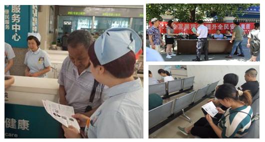 为进一步加强安全生产宣传教育工作,普及安全知识,弘扬安全文化,提高安全素养,根据市安办关于开展2016年“安全生产月”活动的通知要求,营造“安全生产月”活动氛围,医院统一安排部署,于6月16日,我院由何东权副院长带队,通过发放传单、播放《痛●思》、《筑基》、《伤逝》警示教育宣传片、LED宣传标语等多种形式对“安全生产法”、“消除火灾隐患,提高自防自救能力,确保家庭安全”、“医院防火知识”“医院治安防盗,防诈骗知识”等进行广泛宣传,提高全民安全意识,助力安全生产工作,抓好当前防汛、地质灾害和消防等重点安全工作。