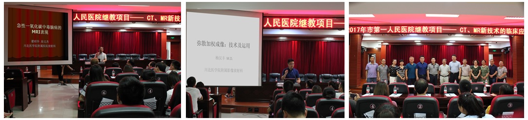 广元市医学会主办、广元市第一人医院承办的2017年继续医学教育项目"CT、MR新技术的临床应用"医学学术交流会于2017年7月29日在广元市第一人民医院学术厅举行,会议邀请了川北医学院翟昭华、杨汉丰、黄小华三位教授和广元市市内部分专家授课,卫计委副主任宋代春、医政科科长吴玲、广元市第一人民院长刘峰、副院长杨萍参加了本次会议,会议由杨萍副院长主持,刘峰院长、翟昭华教授、宋代春副主任分别在开幕式致辞,学术会议由广元市第一人民医院放射科主任黄文光主持,广元市各地两百余名放射医学相关从业人员及临床医务人员参加了此次学术会议。翟昭华、杨汉丰、黄小华等专家分别讲解了《急性一氧化碳中毒脑病的MRI表现》、《弥散加权成像:技术与应用》、《高场MR新技术的临床应用新进展》、《能谱CT的临床应用》、《直肠癌的MR分期》、《头颈部CTA的临床应用》、《冠脉CTA的临床应用》等,全面展示临床医学与CT/MR影像诊断的密切联系、高场MR新技术的临床应用及最新进展、影像医学未来发展方向等。通过该会议的学习,参会学员纷纷表示开阔了眼界、受益匪浅,对CT、MR新技术的临床应用和科室的发展有重大的指导意义。会议达到了预期的目的,取得了圆满的成功!