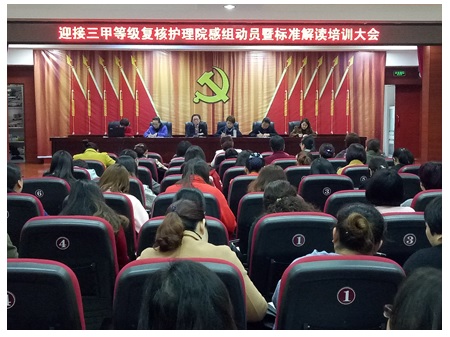 2017年11月5日,我院护理部召开了“三甲复核护理院感组标准解读培训”大会,会议由磨琳主任主持,参加会议的有全体科护士长、护士长、副主任护师、院级带教师资以及各科专业组长,分管护理的罗勤副院长亲临培训现场。