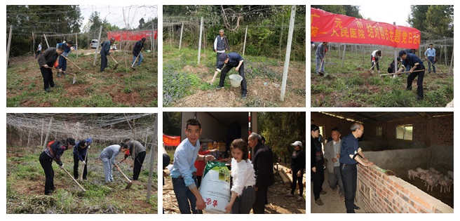 3月30日,院工会主席、驻村工作队队长廖雁,院纪委书记晏荣,住院部总支书记侯英丽带领我院住院部总支部分党员干部到石门乡铧山村开展城乡党建结对共建活动和主题党日活动,认真落实全市“作风建设深化年”工作部署,帮扶“春季攻势”,助推春耕生产。铧山村村组党员干部、贫困户和部分非贫困户参加了学习和贫困户瓜蒌产业园区劳动。