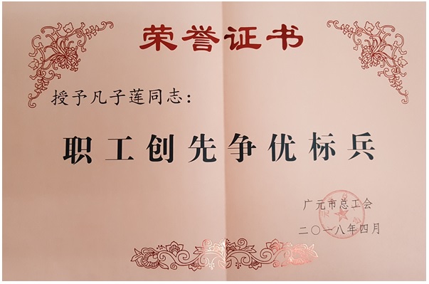 近日,我院神经内科主任、主任医师凡子莲被广元市总工会命名为“职工创先争优标兵”。