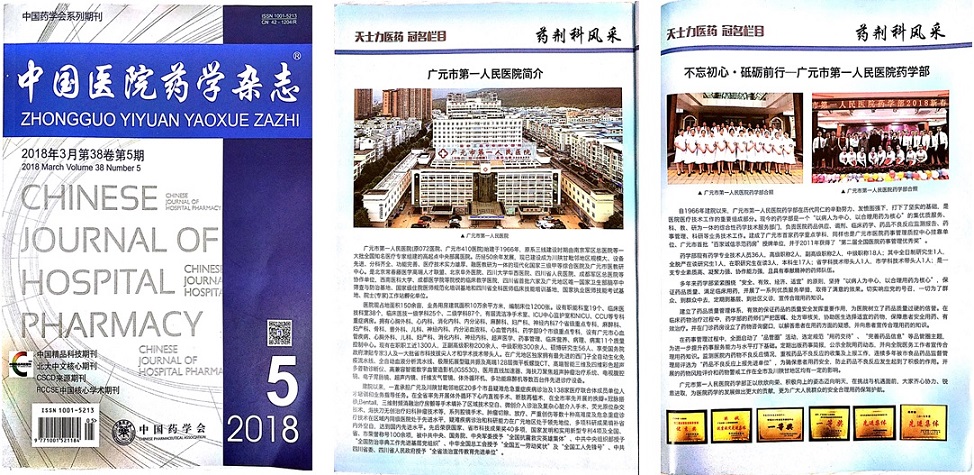 2018年3月,《中国医院药学杂志》(全国发行的中国精品核心期刊、RCCSE中国学术核心期刊)第38卷第5期,对我院及药学部进行了专版报道,介绍了医院发展现状和工作成绩,展示了我院药学部的文化风采:不忘初心砥砺前行!