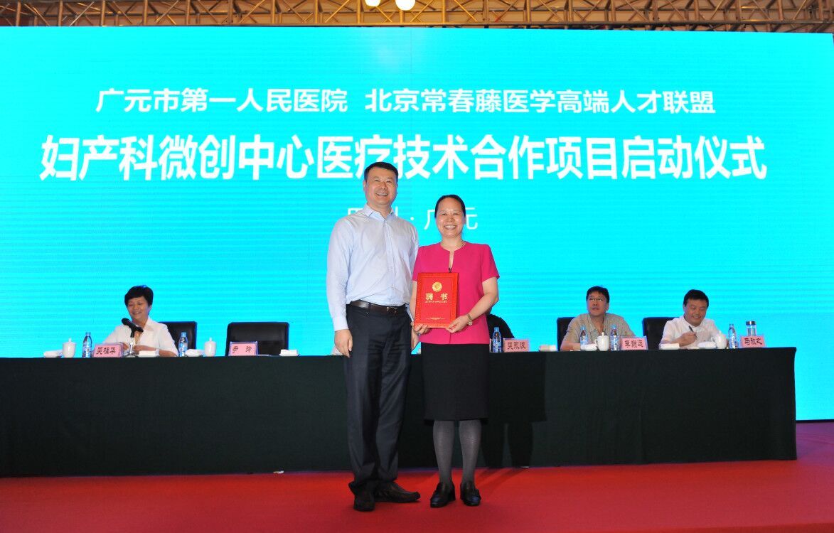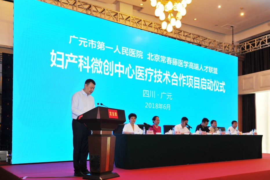 会上,北京常春藤医学高端人才联盟主席吴永波,北京常春藤医学高端人才联盟副主席、北京大学第一医院妇产科副主任尹玲发表讲话,承诺将一如既往地大力支持妇科微创中心的建设,争取像“心血管中心”合作项目一样,做成示范工程,将好的技术、好的作风、好的理念带到广元市第一人民医院,争取三年之内,在妇科微创方面给广元留下一支带不走的高水平医疗队伍,真正惠及广元市以及川陕甘周边的老百姓!