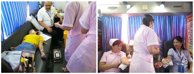 很多医护人员刚刚结束病人的手术及抢救工作后,积极奔赴献血点。此次活动涌现出许多感人的事迹,感染科主任赖辉前往献血点途中不慎摔到,X光检查无大碍后,强忍着疼痛坚持无偿献血;财务科年轻同志杨惠第一次献血,在献血过程中因晕血发生昏迷,休息、调整后,仍坚决要求为省运会献出自己的一份爱心,最终杨惠在平卧的情况下,医护人员采集完成献血。他们这种举动充分体现了“奉献、友爱、进步、互助”的志愿精神,值得全院干部职工推崇和学习。