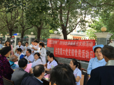 义诊活动中,医务人员及支部党员耐心地为前来咨询的群众解答关于痴呆预防、早期表现的识别及照料等方面的问题,并现场为怀疑有早期痴呆表现特征的群众进行认知功能障碍的初步筛查,免费为他们进行测血压、心肺听诊等检查。除此之外,我院医务人员还为家中有痴呆患者的群众发放黄手环,方便存留患者信息及家人联系方式,防止患者走失。