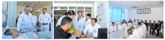 随后,赵继宗院士、张岩教授以及黄光富教授在市领导、院领导的陪同下,走访了放射科、介入中心、神经外科等临床科室,现场询问各科室工作开展情况并予以指导。为深入了解神经外科发展现状及本地神经系统疾病患者的病情,赵继宗院士在神经外科进行了教学查房,亲自为病人查体、耐心询问其病情,并与神经外科、神经内科等科室医生就查看的数位患者病情一一展开讨论,为病人的后续治疗提出诊疗意见。赵院士根据科室发展现状,对神经外科医疗设备的配置以及学科未来的建设提出了创造性的建议,刘峰院长等医院班子成员认真听取,表示将会落实赵院士对医院提出的宝贵建议。教学查房结束后,赵继宗院士、张岩教授为来自朝天、苍溪等四县三区慕名前来的门诊患者看诊,在细心询问病情,查阅病历资料后,院士专家为病人提出了科学有效的治疗方案,并告诉他们对后期治疗要保持信心。