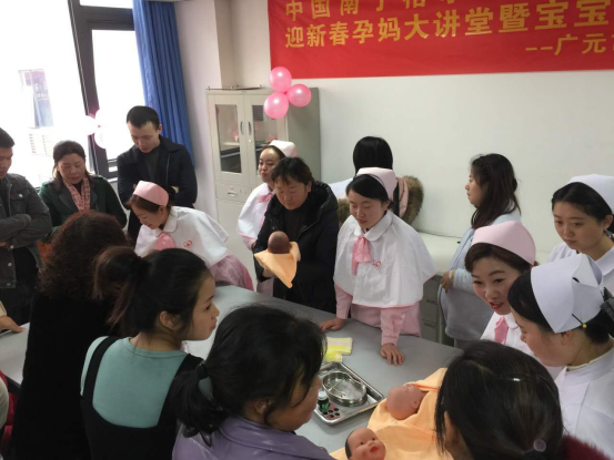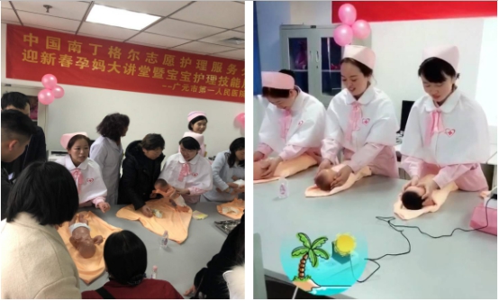 2019年1月16日下午三时,伴随着欢快的抚触儿歌,中国南丁格尔志愿护理服务分队“迎新春孕妈大讲堂暨宝宝护理技能展示”在市第一人民医院综合楼带教室开始了。