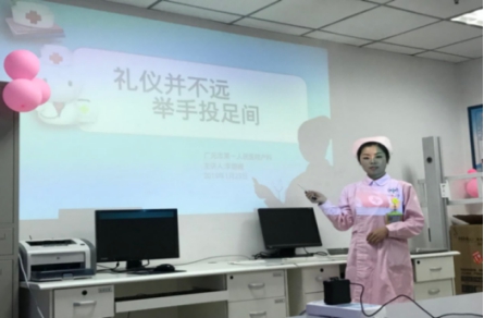 李姗姗精心准备了礼仪培训课程,以理论知识讲解了护士仪容仪表、仪态举止、护士常用工作礼仪、电梯礼仪等护理服务礼仪;现场演示了日常工作中的站、坐、行、蹲;情景模拟了与患者交流时的目光礼仪、口罩的标准佩戴、病例夹的拿取方法、轻声开关门等。这些细节不仅是展示优秀医护团队专业形象的重要途径,更是品牌产科建立的重要组成部分。随后产科主任、护士长亲自参与现场演示。