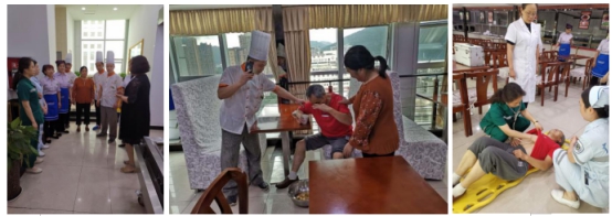 6月21日,医院总务科、预防保健科、急诊科及职工食堂全体员工在职工食堂联合开展了突发食品安全应急演练,演练中,大家反映迅速、分工明确、组织有序、流程规范。通过此次演练,让大家充分了解掌握了事前预防、事发应急响应、事中应急处置、事后恢复与重建的应对程序和策略,大幅度提高了职工食堂的工作人员对突发性食品安全事故的应急处理能力。扎实高效地实施应急预案可以将有效控制事态发展,最大限度的减少人民群众生命财产安全,将各种损失和不良影响降至最低。
