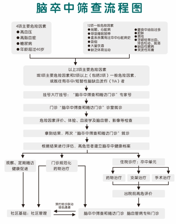 上述16种危险因素中占3种或以上者,脑卒中发病风险高,每年均应到脑卒中门诊进行筛查。