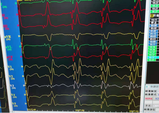 图一:术中心电图变为右束支阻滞,表明起搏位点到位。