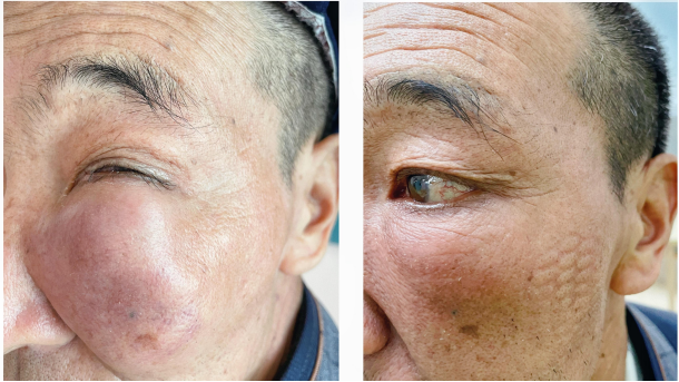 治疗第10天,整个疗程完成不到一半时,王大叔面部的包块已经明显变小,效果十分显著,放疗疗程结束后,面部包块已完全消失,遂办理出院。
