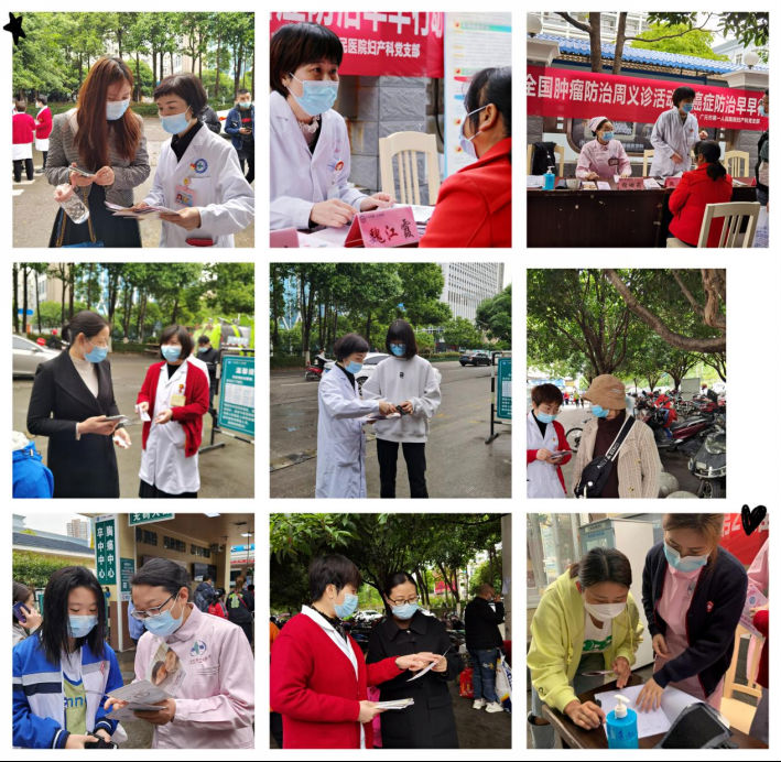 4月17日上午9点,妇产科党支部走上街头,围绕宫颈癌、子宫内膜癌和卵巢癌妇科常见的三大恶性肿瘤开展癌症防治义诊活动,向过往行人宣传癌症防治的三级预防理念,强调接种宫颈癌疫苗的重要性,号召广大女性力争从我做起,定期健康体检和筛查高危因素,提高癌症防治意识和能力,做到“癌症防治早行动”。
