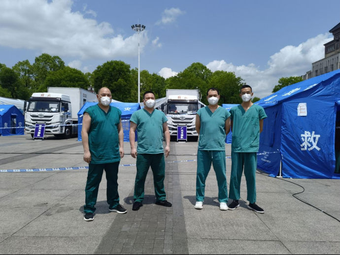 5月13日,刚结束隔离的援吉林市核酸检测医疗队“四勇士”胥华猛、陈锦、张思沉、母会铃再披战甲、应召出征。5月17日,还在成都隔离的援沪队员昝颖,提前结束隔离,立即奔赴新的战线。此前,昝颖瞒着九旬爷爷,作为医院唯一援沪队员千里驰援。“这两天跟爷爷视频,他一直念叨着我,答应了爷爷,等两天就回去看他。”离开家乡四十多天了,眼看着即将结束隔离,回广元和家人团聚,面对人民的呼唤,昝颖毅然再次奔赴了新的战场。