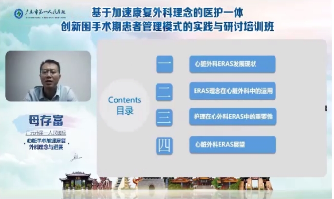 广元市第一人民医院母存富副院长就《加速康复外科理念在心脏外科的应用与进展》,介绍了心脏外科在加速康复外科领域的发展现状、心脏外科围手术期加速康复的具体实施措施,特别强调了护理在加速康复中的重要性,为心脏外科的医护人员在临床工作中提供了工作指引。