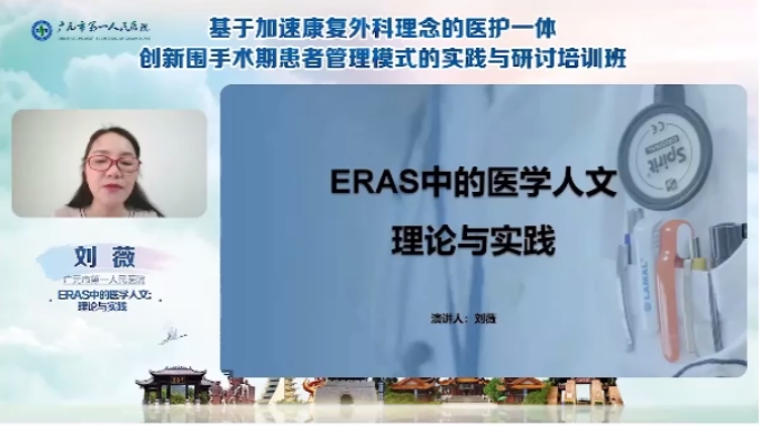 广元市第一人民医院刘薇科护士长围绕《ERAS中的医学人文:理念与实践》,从人文角度介绍了护士在术前、术中、术后加速康复具体的标准化的管理方法及内容,为护理人员提供了工作指引。