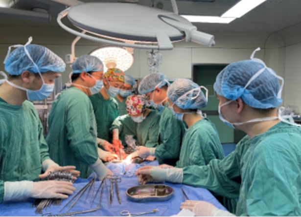 2023年3月,市第一人民医院组织心胸血管外科、妇产科、普外科、泌尿外科、麻醉手术中心、重症医学科多名专家,结合3D打印技术对患者实施治疗。术中,手术团队行经腹部正中切口腔静脉、髂静脉肿瘤切除+髂内、髂总静脉修补+子宫及双附件切除+双侧输尿管支架管植入术,首先切除患者子宫及附件,然后对患者下腔静脉(从肝静脉到髂内静脉之间)中的平滑肌瘤进行清除。历经5小时的艰苦奋战,手术顺利完成。目前,患者恢复良好。