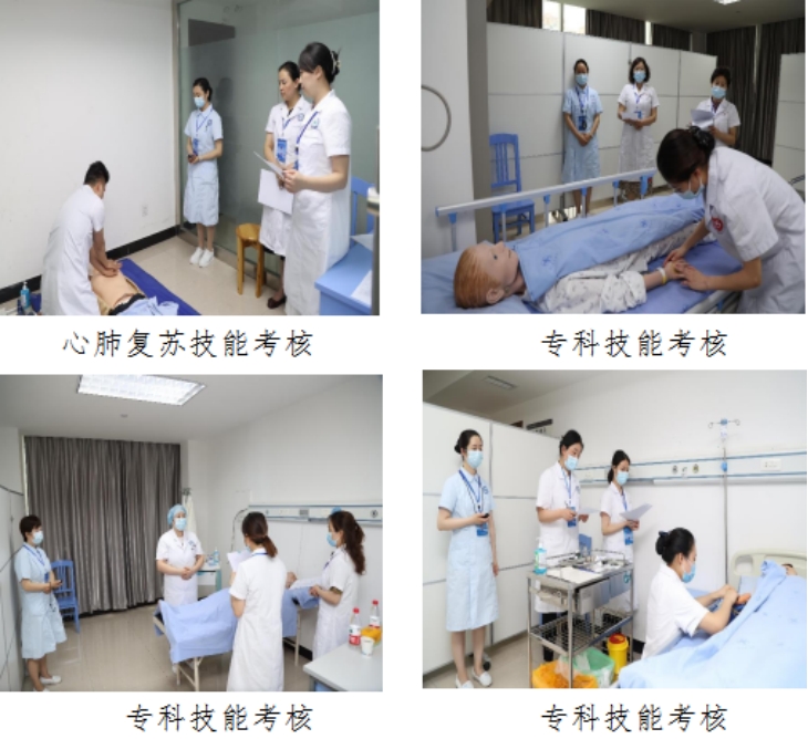 此次考核共设置基础技能操作和专科技能操作两站七个考核项目。其中基础技能操作CPR必考,考生在三组六项专科技能操作中随机抽取一组两项进行考核。为保证公平、公正、严谨、顺利地完成整场考核,此次考核分别从市内3个培训基地抽取16名教学经验丰富的科护士长及护士长担任考官,30余名护士承担考务工作。大家各司其职,有条不紊地配合,共同完成了此次考核。