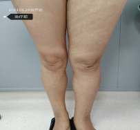一个疗程的治疗后,蒋阿姨左下肢水肿明显消退,皮肤明显变软,脚背消肿3cm,脚踝关节处消肿5cm,小腿消肿最大6cm,大腿消肿5cm,之前不能穿的鞋子现在都可以穿了。