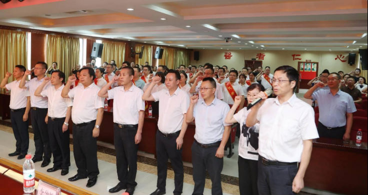 “我宣誓,我志愿献身人类的健康事业;自觉维护医学的尊严和神圣……”全体与会人员起立,高举右拳,目光坚定,在王天勋院长的带领下重温《中国医师宣言》。这一刻,神圣无比。
