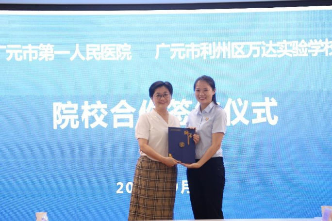 会上,王天勋院长和杨宇恒校长分别代表广元市第一人民医院和广元市利州区万达实验学校签署院校合作协议。