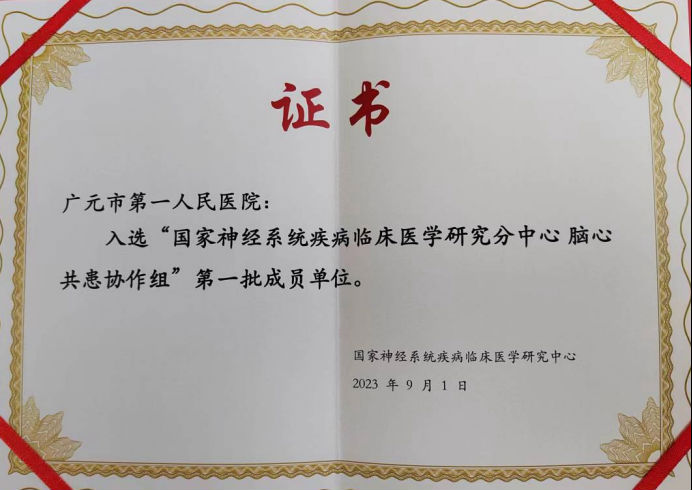 第一批脑心联盟单位由14个省的37家单位组成。会上,中国科学院院士、国家神经系统疾病临床医学研究中心主任、首都医科大学附属北京天坛医院赵继宗为广元市第一人民医院颁发证书。至此,医院成为第一批脑心联盟区域分中心及“国家神经系统疾病临床医学研究分中心脑心共患协作组”成员单位,意味着医院在脑心同治领域迈上了新台阶。