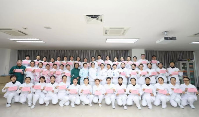 参考率100%,合格率达100%,达到了预期的培训效果。护理部主任赵丽和科护士长李华萍为学员们颁发结业证书,并合影留念。