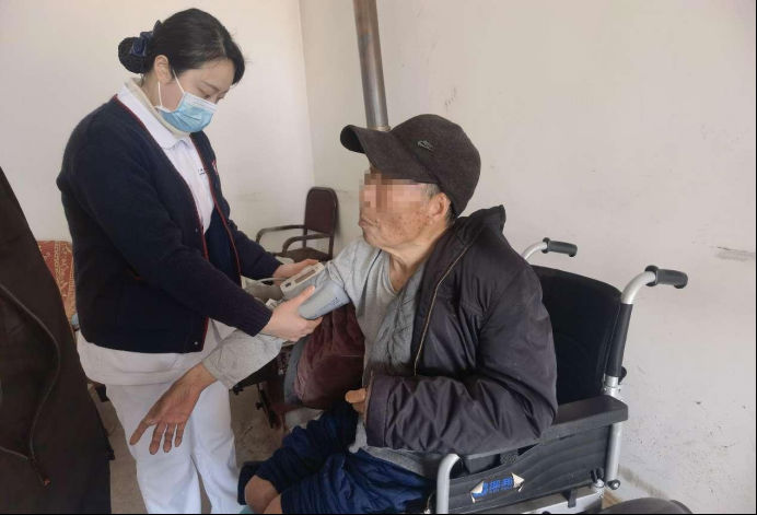 活动中,卒中团队还为几位因腿脚不便、瘫痪在床的村民提供上门服务,把健康送到村民家中。