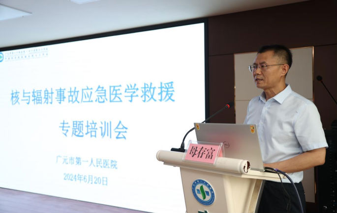 为进一步提升我市的核与辐射事故应急医学救援能力和水平,按照省、市相关决策部署,2024年6月20日,市第一人民医院于综合楼五楼会议室举办核与辐射事故应急医学救援专题培训会。会议特邀成都市核工业四一六医院贺再清教授、广元市疾病预防控制中心职业健康防护所熊剑教授来院培训指导。会议由院党委委员、副院长母存富主持。