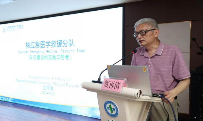 成都市核工业四一六医院贺再清教授围绕“核应急分队建设的实践与思考”展开培训,从核应急体系架构、医学救援基地建设,包括医学救援分队人员设置、职责任务、安全保障、去污洗消、医学救治、个人防护等方面内容进行了详细阐述。
