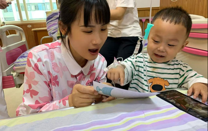 “没想到住院还能过这么热闹的节日,孩子今天特别开心,都忘了自己在打针了。”