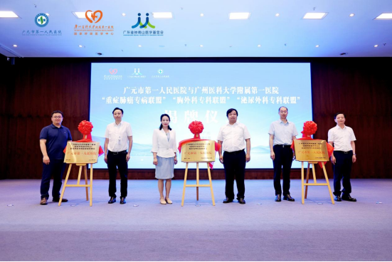 会上,国家呼吸医学中心、广州医科大学附属第一医院授牌广元市第一人民医院“重症肺癌专病联盟成员单位”“胸外科专科联盟单位”“泌尿外科专科联盟单位”“肺肿瘤早筛与无管微创技术联盟单位”,双方代表共同揭牌。