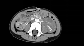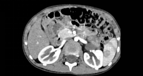 该患儿反复腹痛难忍,家属遂携其前往广元市第一人民医院就医。经检查发现腹腔内长有一直径约10厘米的巨大肿瘤,肿瘤上极达左侧肾门、下极达左侧髂总动脉分叉平面,可见腹主动脉下端一分支动脉供血,肿瘤已严重挤压肾脏、输尿管、肠道等重要脏器,若不及时手术,将危及生命。但患儿年龄仅3岁,器官娇嫩、耐受度低,且肿瘤与腹腔大血管紧密粘连,手术分离难度极高,稍有不慎便可能引发大出血等致命风险,治疗挑战重重。