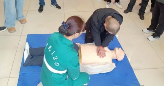 随后,何梦娟副护士长现场演示了心肺复苏术。她首详细讲解了心肺复苏术的操作要点,包括如何判断患者的心跳和呼吸骤停、正确的按压位置和深度、按压与人工呼吸的比例等,并使用模拟教具人进行了标准的操作示范,让现场滴滴司机直观地了解每一个步骤,并邀请其上台进行实践操作,对不规范的动作给予耐心指导与纠正。滴滴司机纷纷主动上台尝试,从最初的生疏犹豫,到逐渐掌握按压节奏、开放气道、人工呼吸的操作要领,现场互动积极、学习氛围十分浓厚。