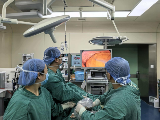 手术当天,陈均团队与麻醉科紧密协作。麻醉科张莉副主任、刘兴红医师在超声引导下精准区域神经阻滞,配合短效镇静镇痛药物,确保患者在自主呼吸状态下平稳接受手术。术中,陈均团队通过单孔胸腔镜精准定位心包积液区域,仅以微小切口完成开窗引流操作,快速排出压迫心脏的积液,成功解除了致命性心脏压迫。整个手术过程视野清晰、操作精准高效,在最大限度保障患者安全的同时,将手术创伤降至最低。