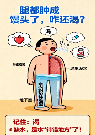 腿都肿得像“馒头”一样了,怎么还会口渴呢?——原来是水跑到不该去的地方啦!