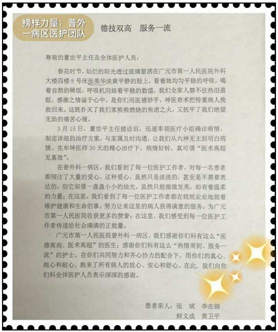 2016年6月21日,一位50多岁的患者家属在行政楼找到了党办。开始还以为是投诉,一问才知道,这位患者家属是来送感谢信的...
