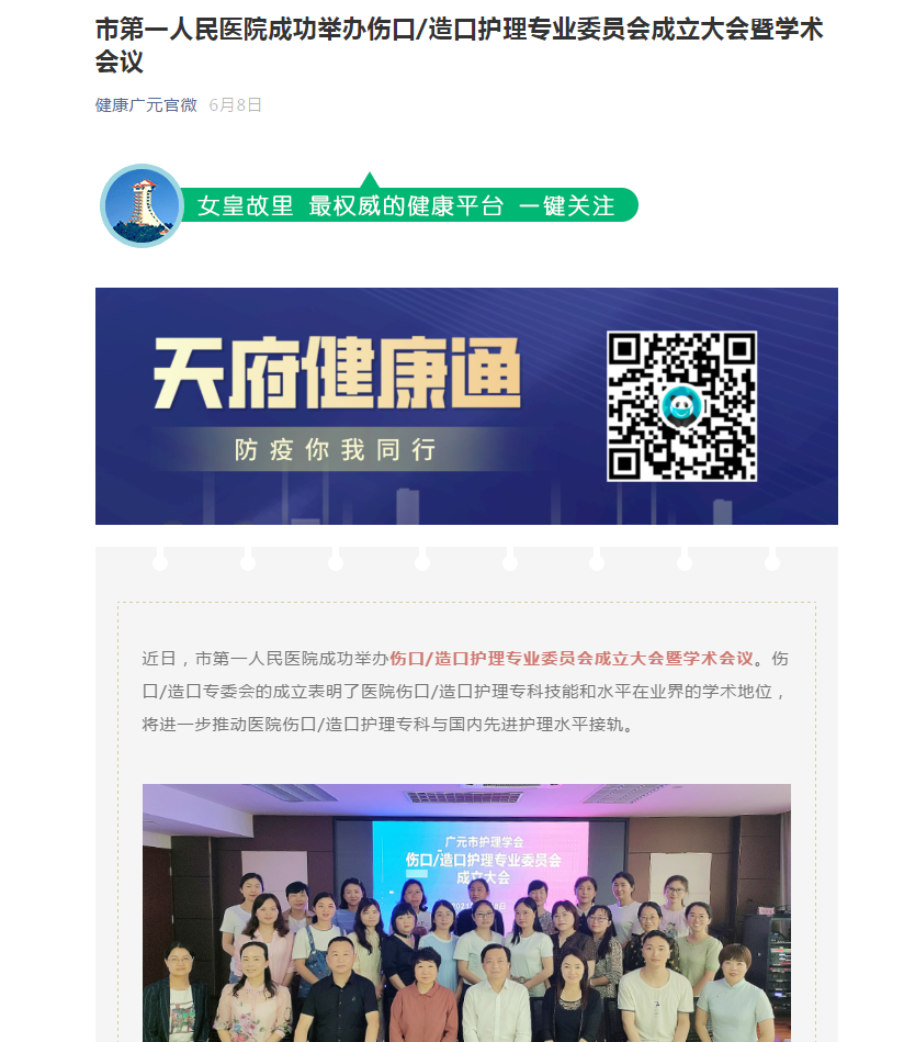 健康广元官微:市第一人民医院成功举办伤口/造口护理专业委员会成立大会暨学术会议