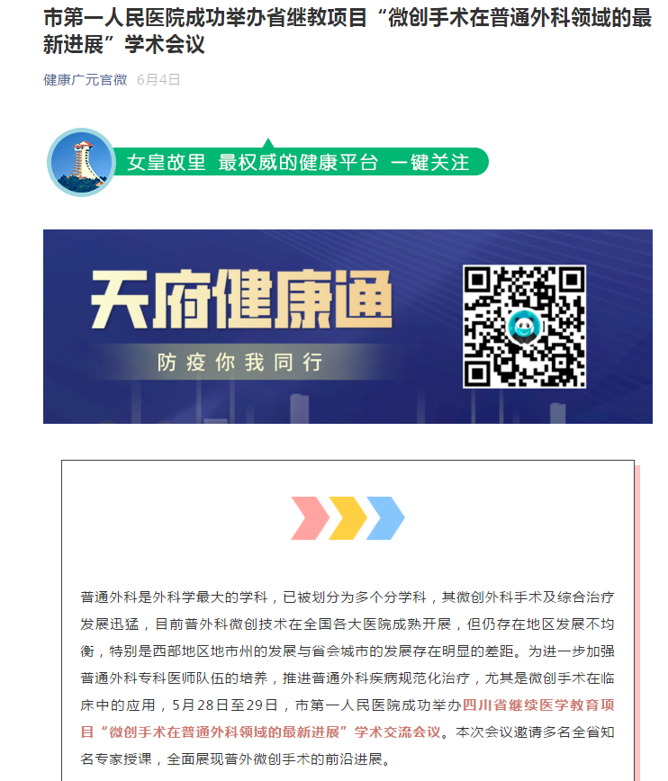 健康广元官微:市第一人民医院成功举办省继教项目“微创手术在普通外科领域的最新进展”学术会议
