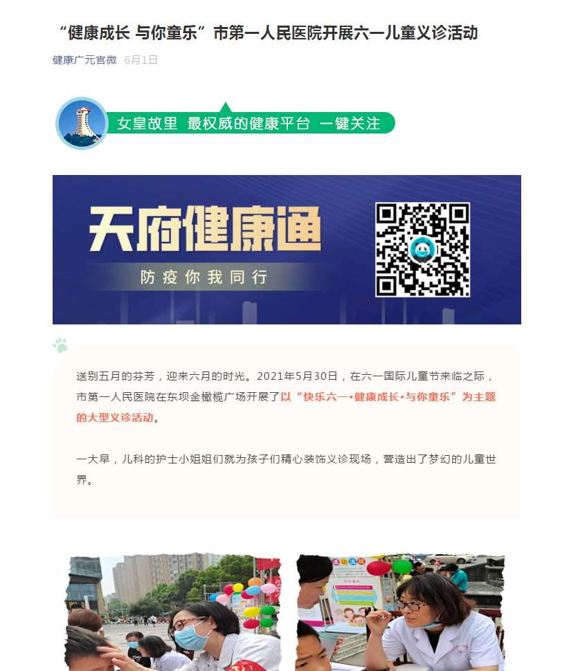 健康广元官微:“健康成长 与你童乐”市第一人民医院开展六一儿童义诊活动
