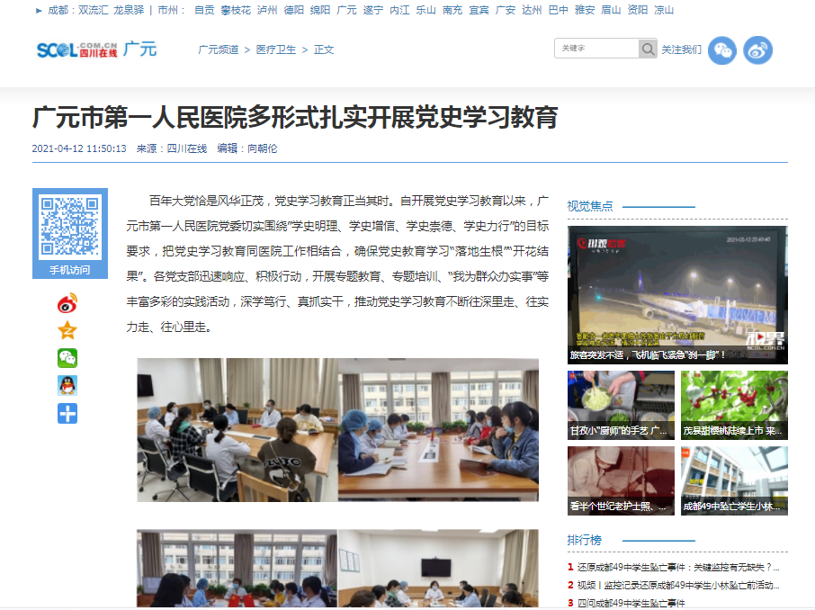 四川在线:广元市第一人民医院多形式扎实开展党史学习教育