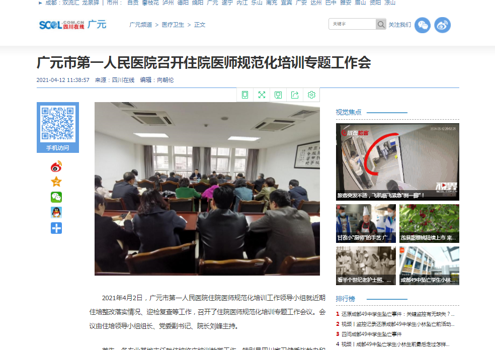 四川在线:广元市第一人民医院召开住院医师规范化培训专题工作会