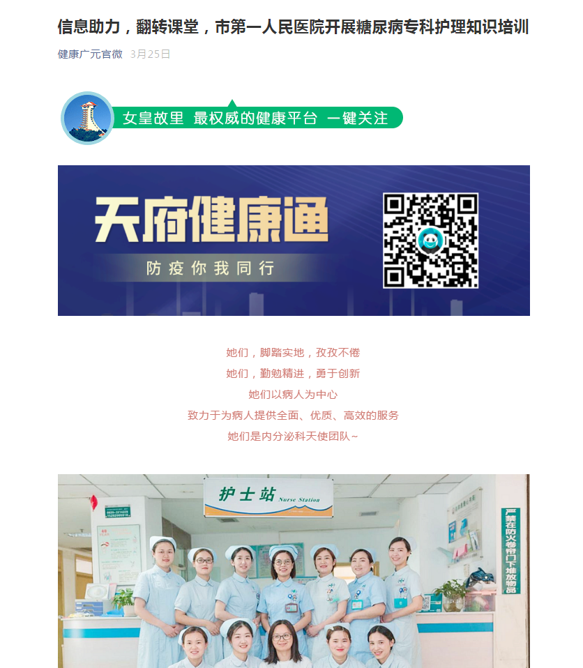 健康广元官微:信息助力,翻转课堂,市第一人民医院开展糖尿病专科护理知识培训