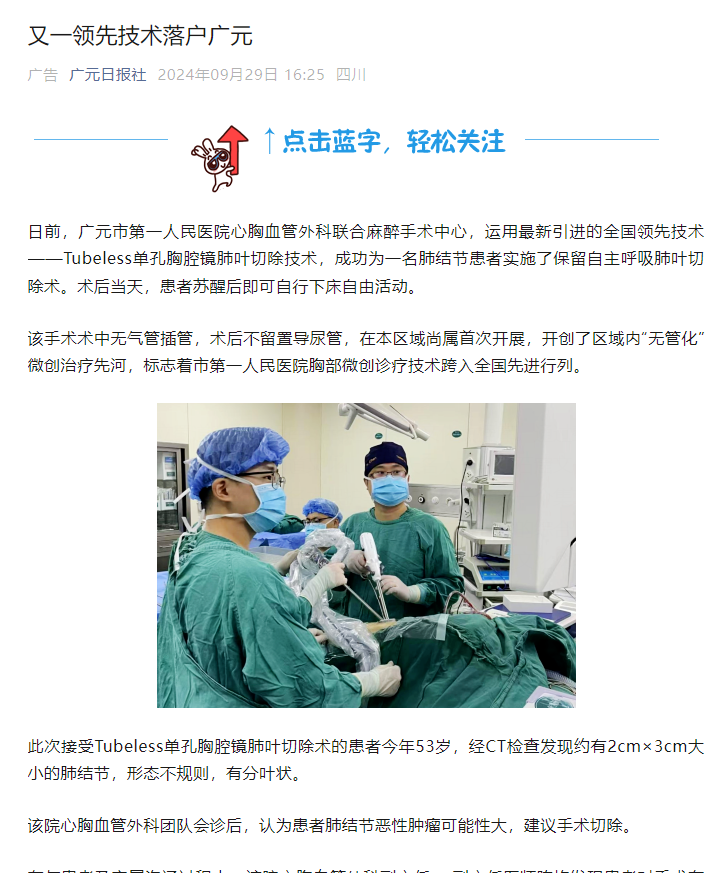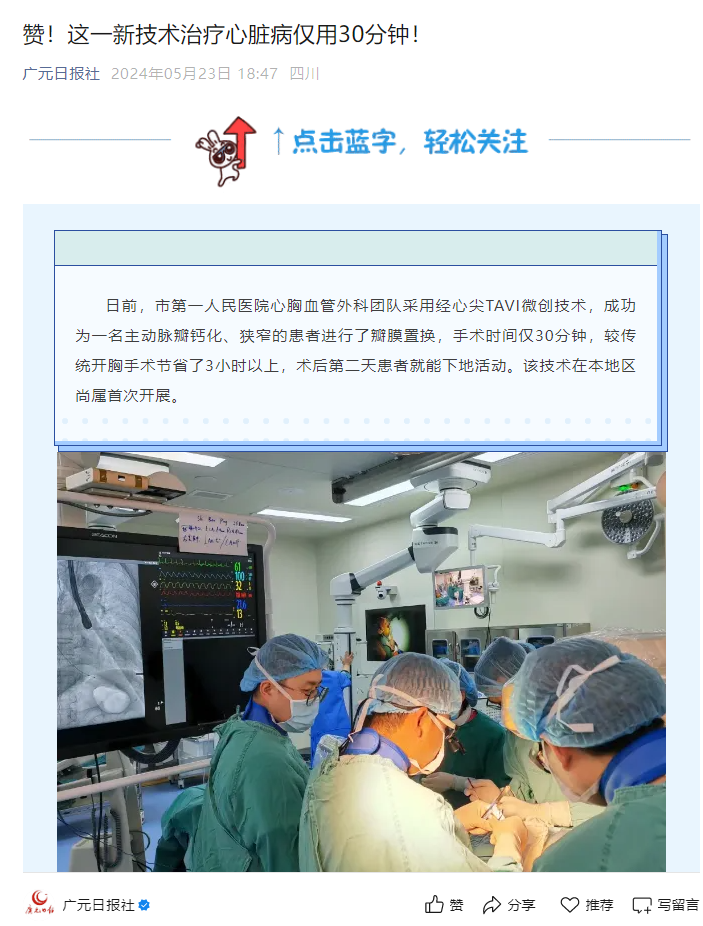 广元日报:赞!这一新技术治疗心脏病仅用30分钟!