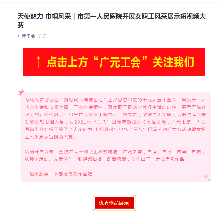 市工会微信:天使魅力 巾帼风采 | 市第一人民医院开展女职工风采展示短视频大赛