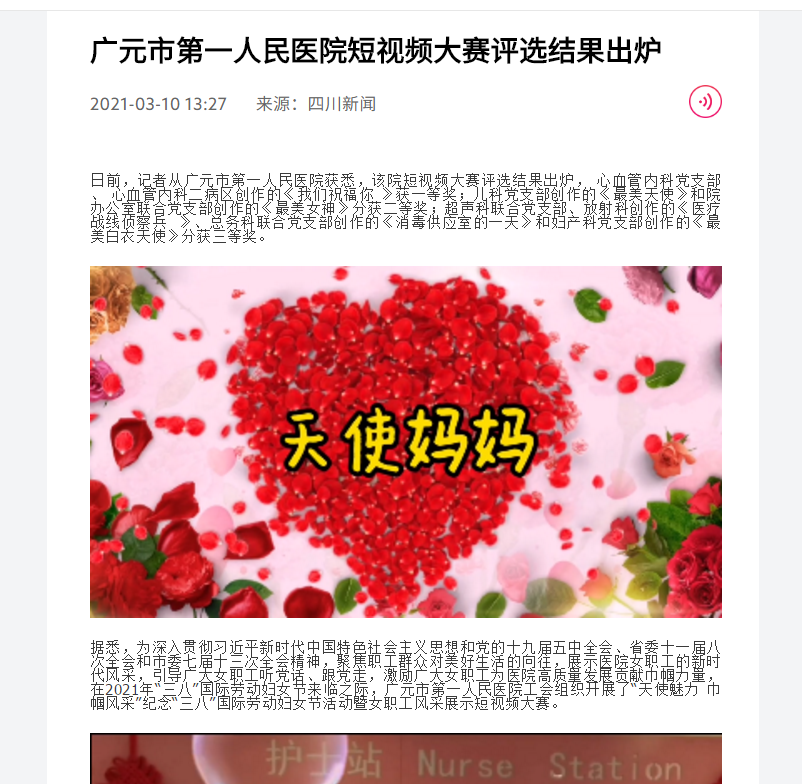 四川新闻网:广元市第一人民医院短视频大赛评选结果出炉