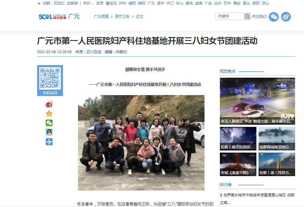 四川在线:广元市第一人民医院妇产科住培基地开展三八妇女节团建活动