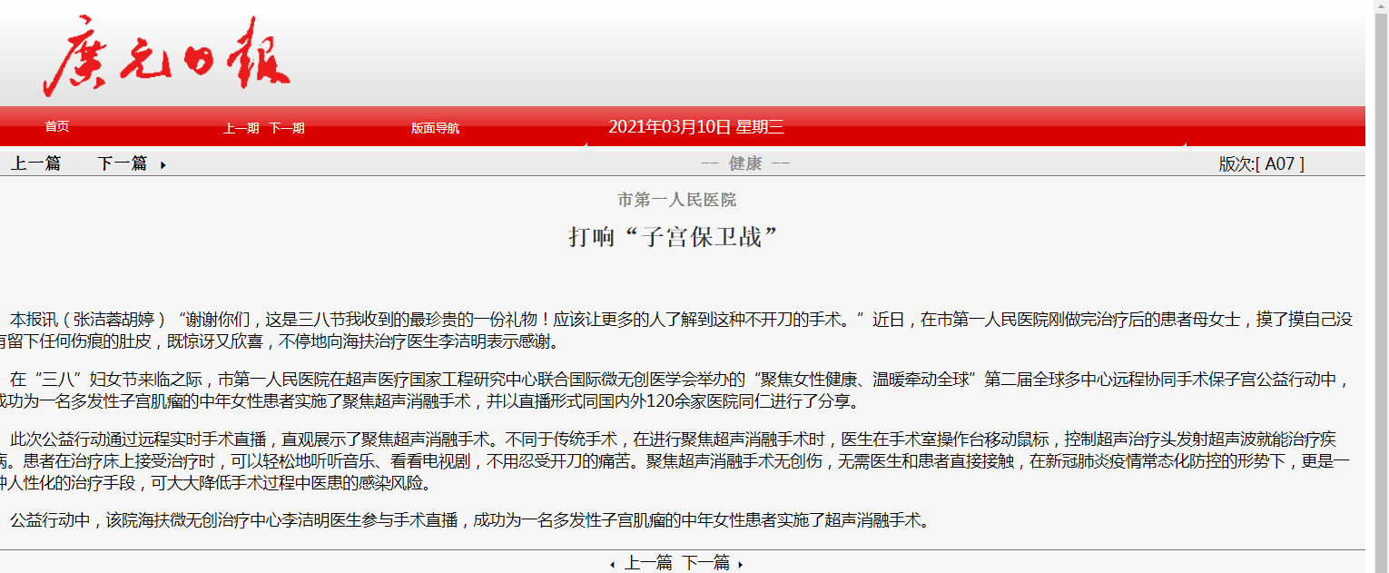广元日报:市第一人民医院 打响“子宫保卫战”