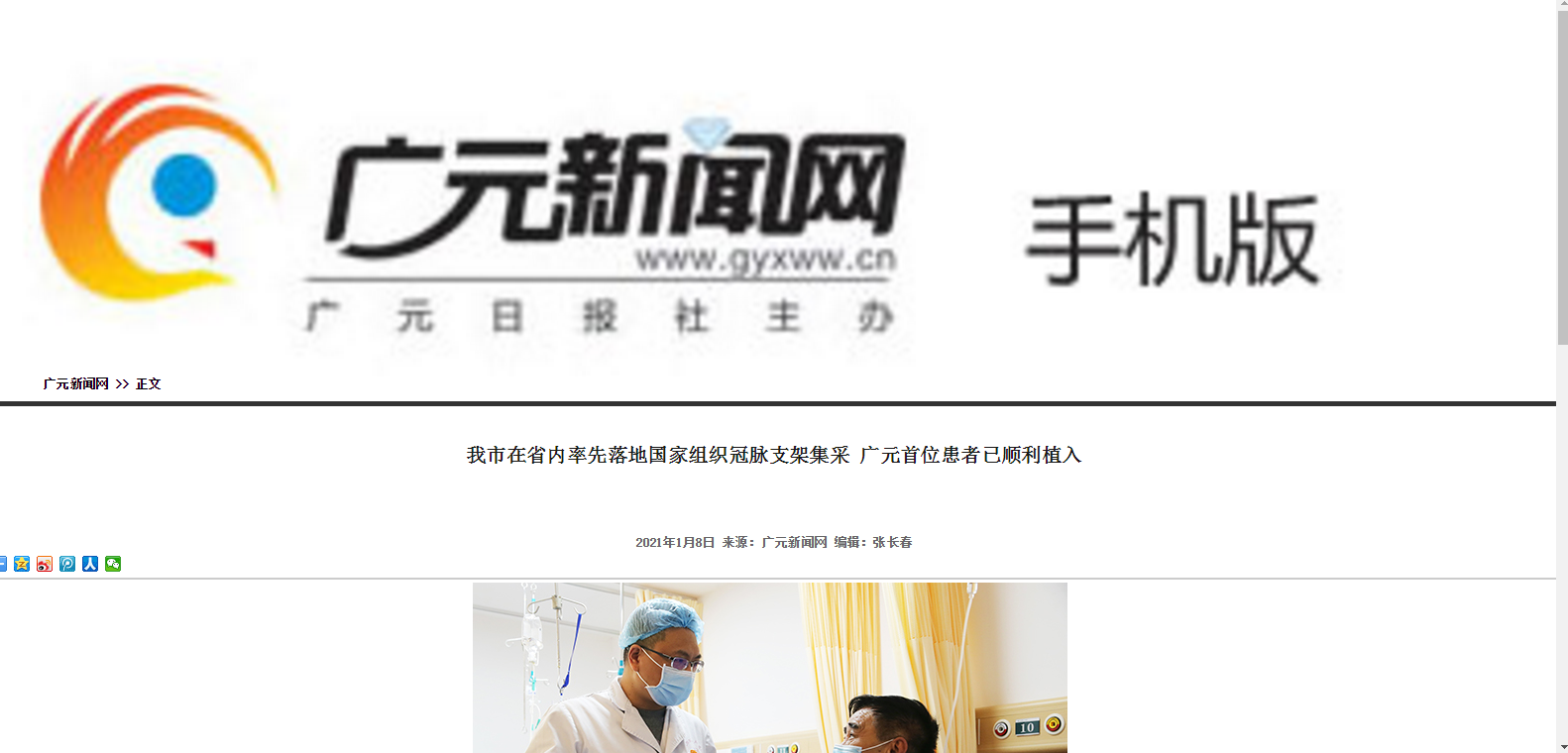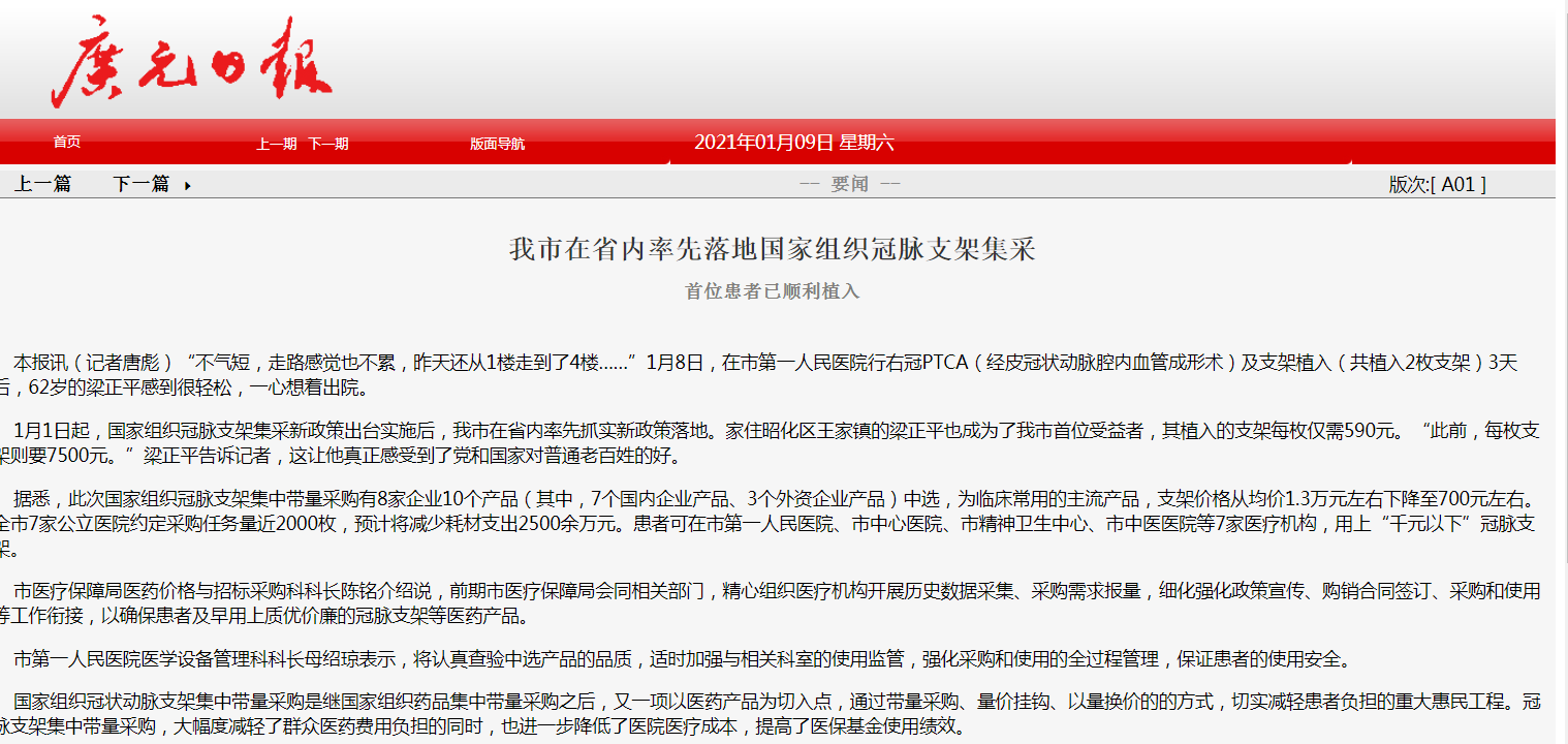 广元日报:我市在省内率先落地国家组织冠脉支架集采 首位患者已顺利植入